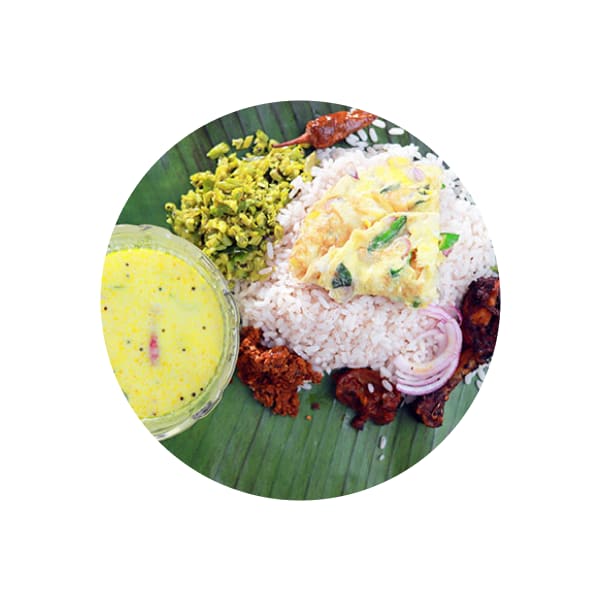 Pothichoru - Chicken is a quintessential Kerala meal, served traditionally wrapped in banana leaves for an authentic flavor infusion. This hearty dish includes steamed rice (often Kerala matta rice), paired with a rich and spicy chicken curry cooked with coconut milk, turmeric, red chili, and curry leaves. Accompanying the main components are classic sides like a boiled egg, Weekend Special fry or pickle, thoran (stir-fried vegetables), and a dollop of coconut chutney. This wholesome package captures the essence of Kerala’s rustic cuisine, delivering a balanced and satisfying meal in every bite.